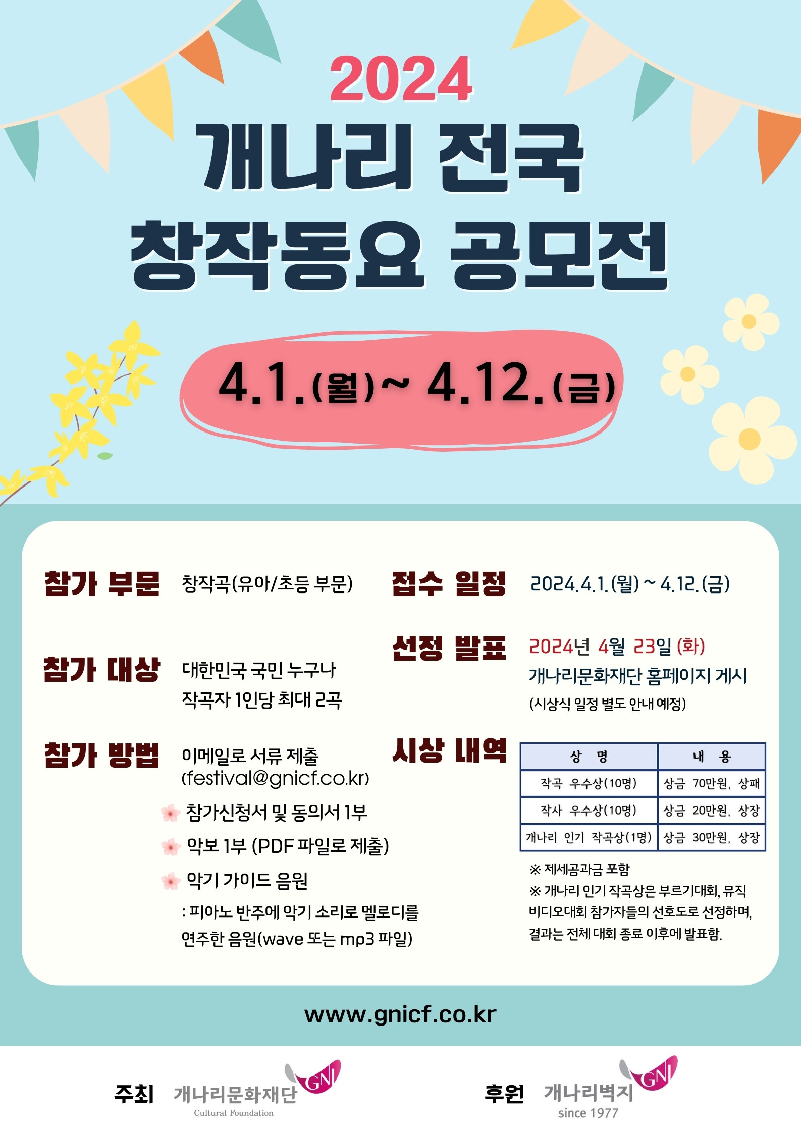 2024 개나리전국창작동요축제 창작동요 공모전 안내