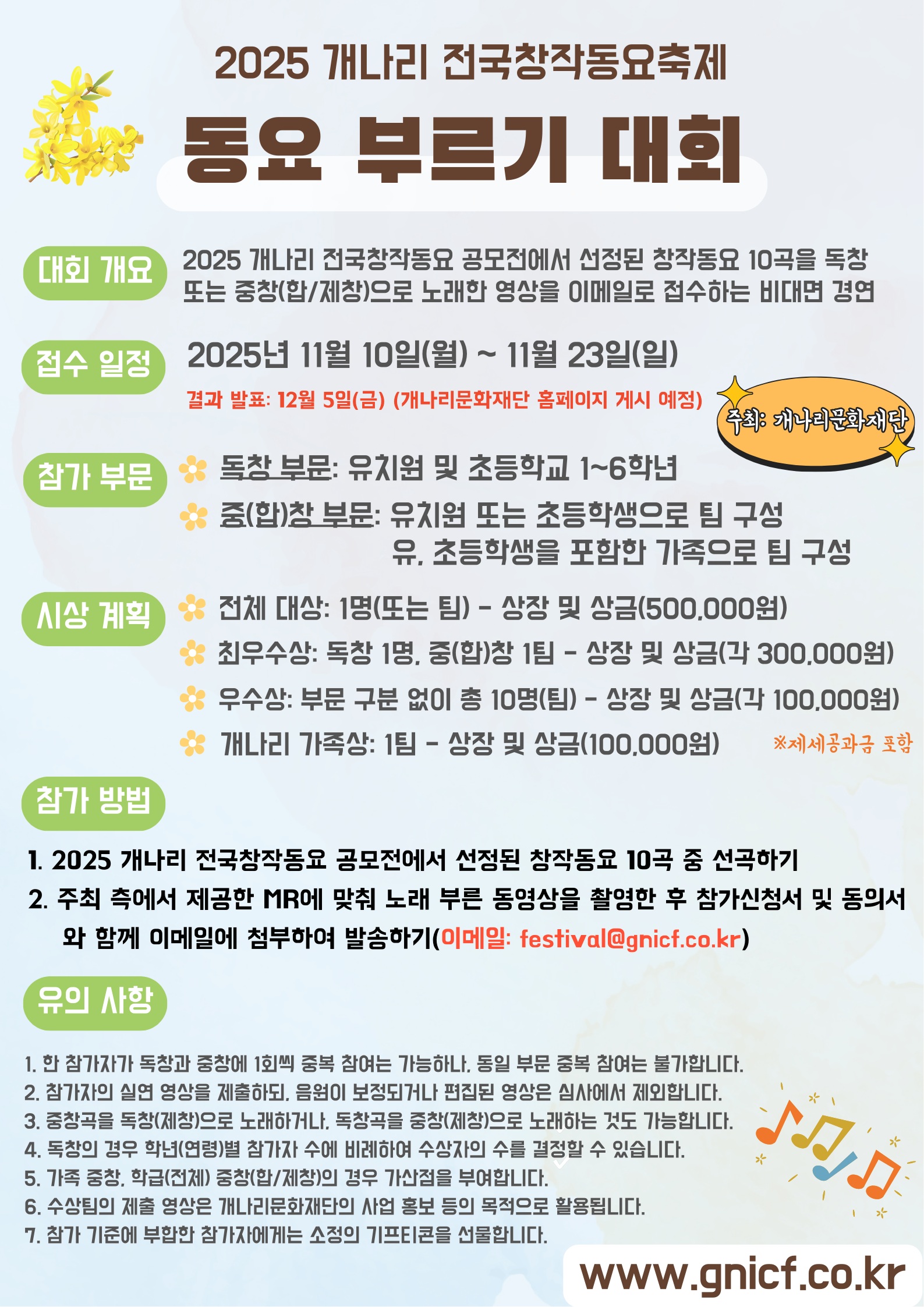 2025 개나리전국창작동요축제 동요부르기대회 실시 안내