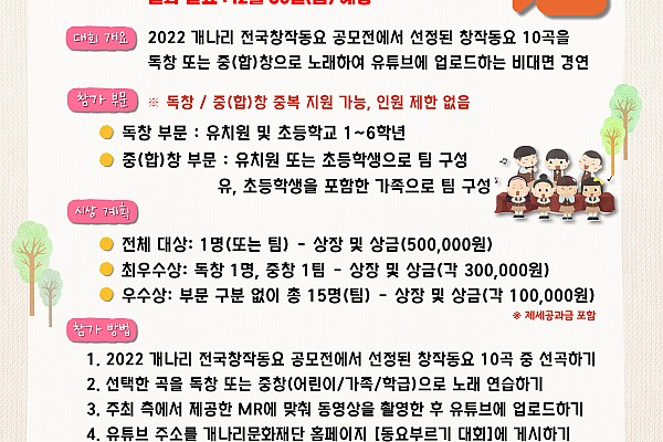 2022 개나리전국창작동요축제 동요부르기대회 실시 안내