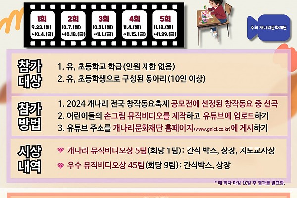 2024 개나리 전국 창작동요 축제 뮤직비디오대회 실시