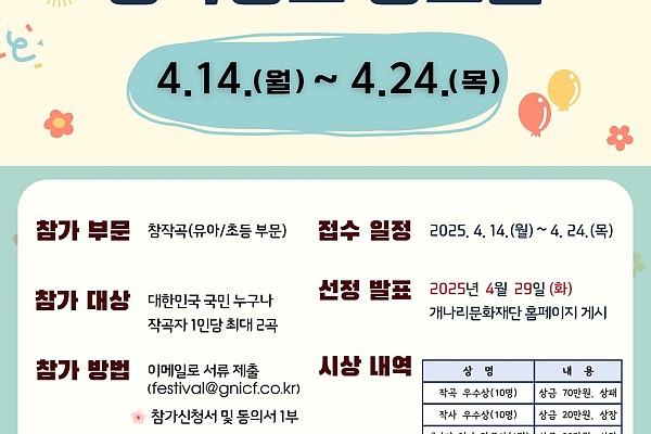 2025 개나리 전국 창작동요 공모전 실시 안내